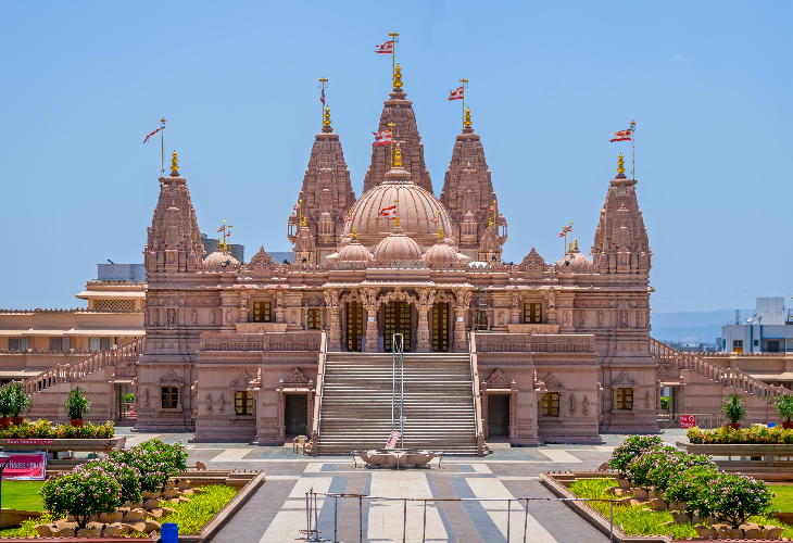 2024年に開かれたばかりで、中東初の伝統的な石造りヒンドゥー寺院「BAPSヒンドゥー寺院」を訪れます。