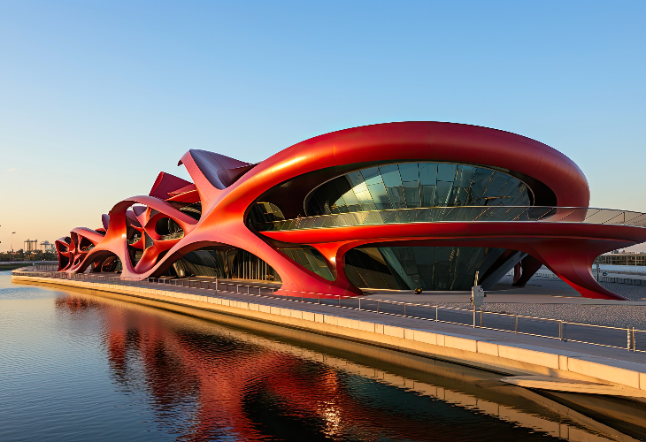 ■真っ赤な巨大屋根とフェラーリのロゴが印象的な、アブダビを代表するランドマーク。