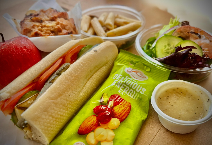 ランチボックス:バゲット、マフィン、サラダ、スナック