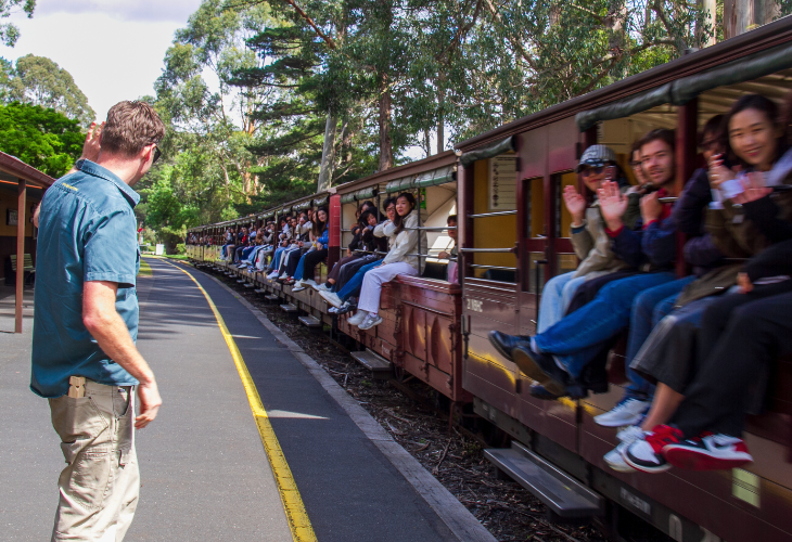 歴史あるパフィング・ビリー蒸気機関車に乗り、ベルグレーブからメンジーズ・クリークへと、緑豊かな雨林やシダが茂る渓谷を進みます。開館している際には、メンジーズ・クリーク博物館を訪れることができ、そこには歴史的な機関車や鉄道の記念品、そしてパフィング・ビリーの豊かな遺産を生き生きと伝えるインタラクティブな展示があります。