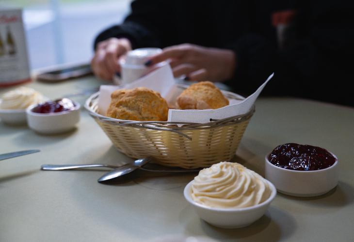 爽やかな山の空気と自然に囲まれながら、焼きたてスコーンにジャムとクリームを添え、温かい紅茶とともに味わうひとときは、まさに至福の体験。