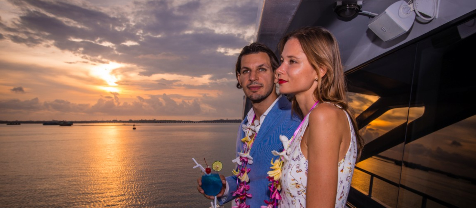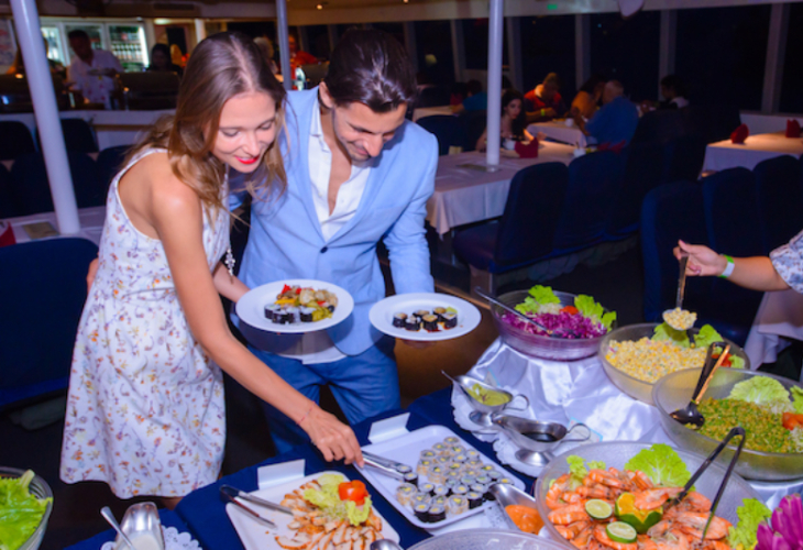 バリハイⅡ号のオープンデッキで飲み物を片手に港を眺めつつ進んでいくと、微かに空が色づき始めていくのが分かります。やがて深いオレンジ、紫、赤と変わっていく様はまるで雑誌や写真集の1ページのようです。船内では種類豊富なインターナショナルバイキング、そしてバンド演奏、キャバレーショー、ディスコタイムなど楽しいプログラムをご用意!このとびっきり美しい夕日を実際にご覧いただき、ご自分で写真におさめて一生の思い出として残してください。