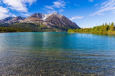 途中、車窓からは、クマやムースや鷲などの野生動物を高確率で見ることができます。前方には山々の絶景が広がるドライブロード!