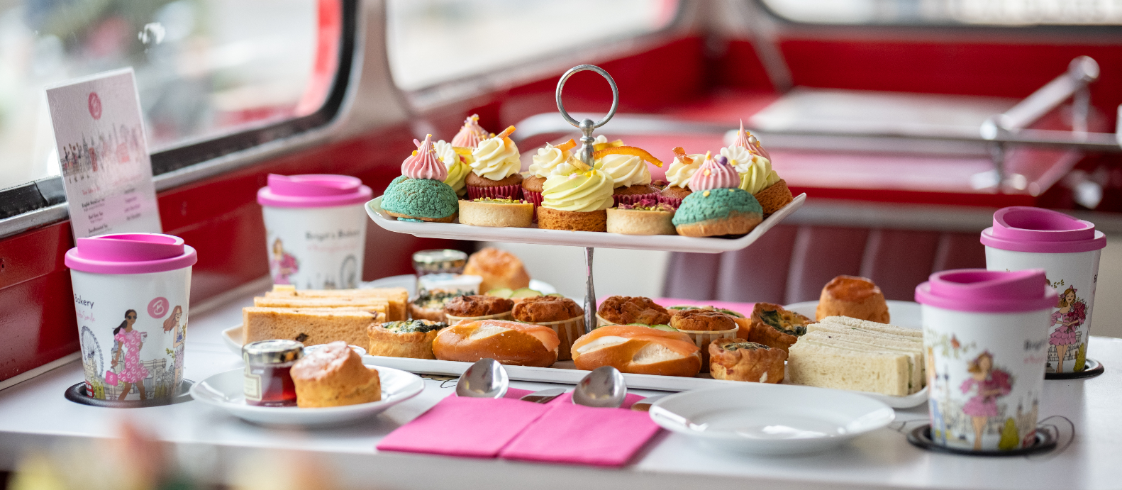 ロンドンといえば一度は体験したいアフタヌーンティーをクラシックな真っ赤な2階建てバスでお楽しみいただけます。