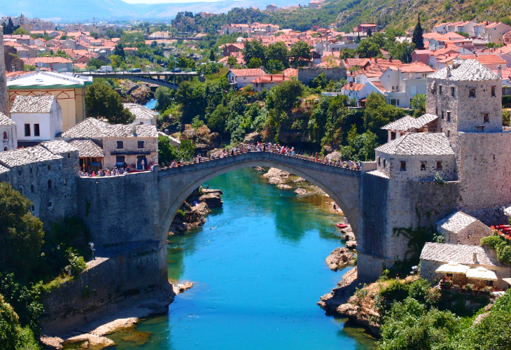 世界遺産モスタル旧市街とクラヴィツァの絶景滝巡り