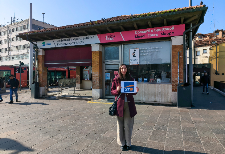 ヴェネツィアのローマ広場の「ACTV」チケット売り場前にご集合ください。日本語アシスタントがお待ちしています。