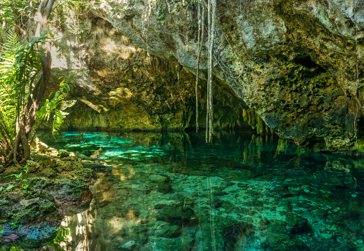 グランセノーテは日本人に大人気のセノーテ。洞窟の奥から見る光の差し込み方はとても綺麗です!