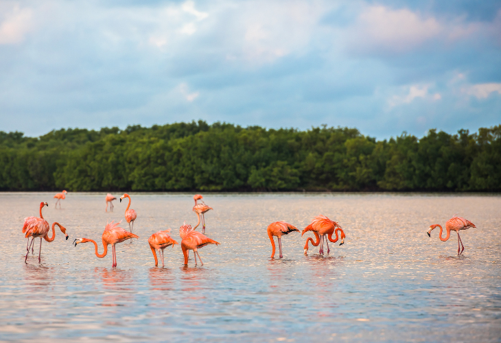 ボートに乗って野生のフラミンゴが見えるところまで移動しします。