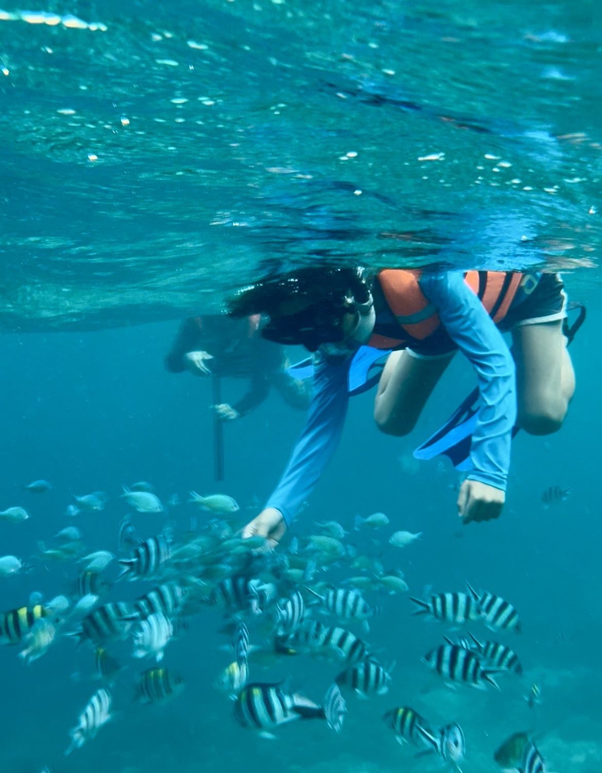 船に乗ってシュノーケルの場所まで移動。さぁどうぞ!みたいな感じで始まるので、驚いた。