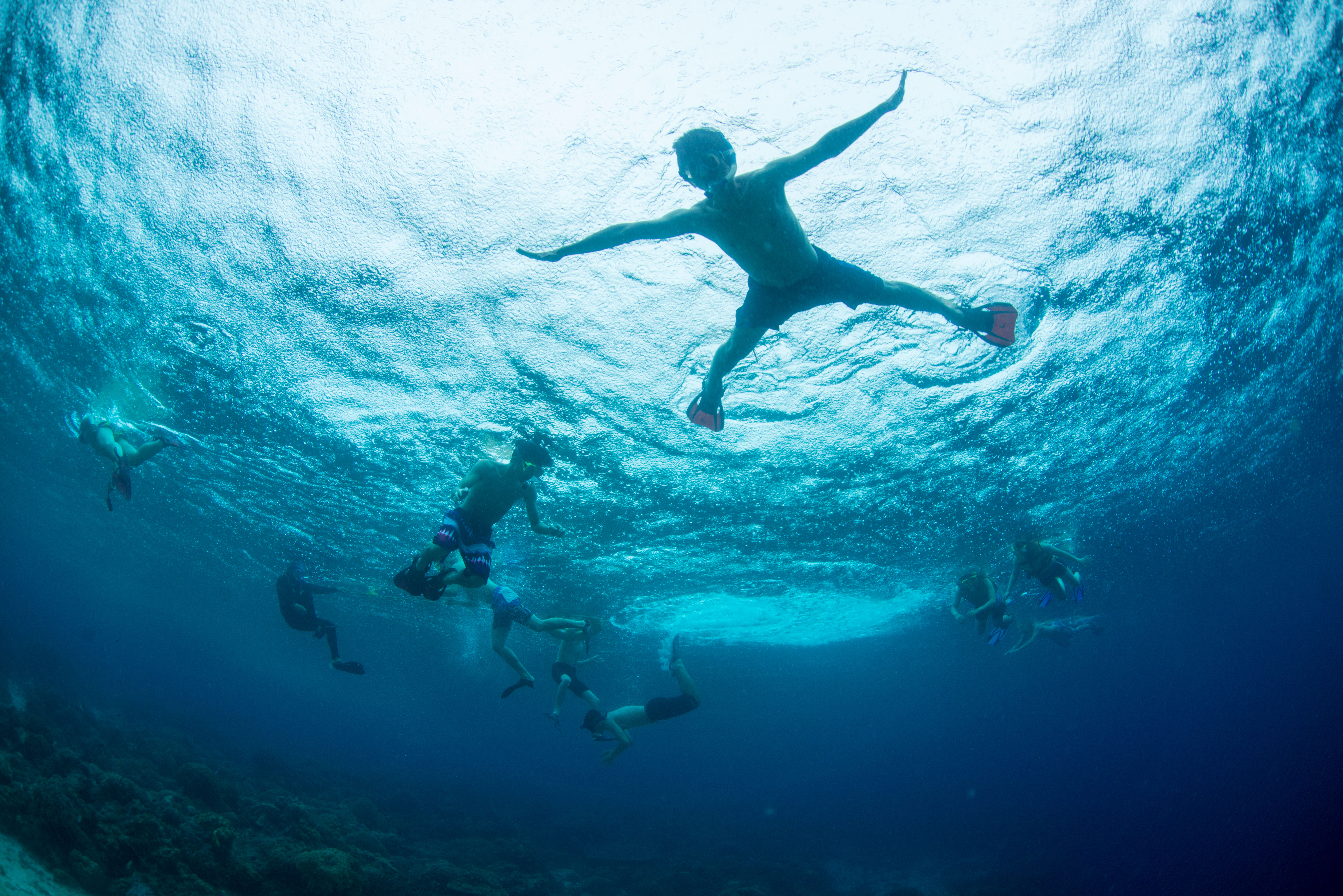 カメに癒され、サンゴに群がる魚たちとのスノーケルを楽しんだ後はイワシ群れで人気のナパリンへ
