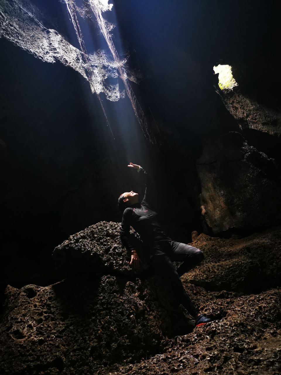 美しい鍾乳石が広がり、天空から自然光が降り注ぐ洞窟内はまさにフォトジェニックな空間。