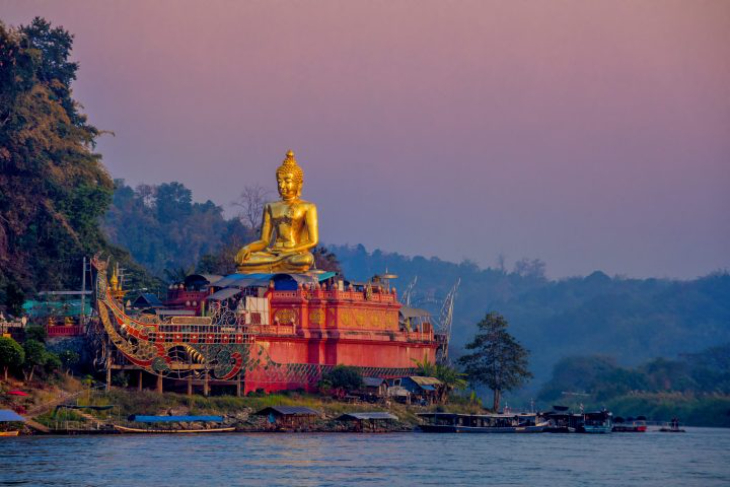 高さ15.99mの黄金色の大仏「プラ・プッタナワラーントゥー」も、この地の見どころの一つです。
