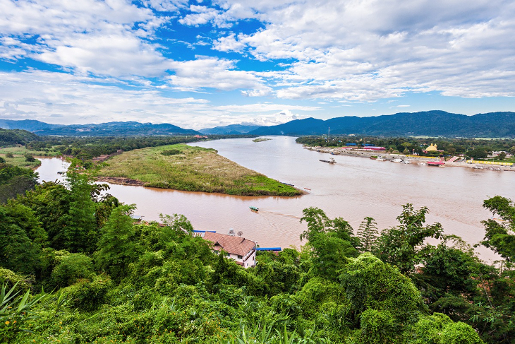 タイとラオスの間を流れるメコン川と、タイとミャンマーの間を流れるルアック川が合流し、3国が国境を接する黄金の三角地帯「ゴールデン・トライアングル」。ビューポイントからは、雄大な景色を望むことができます。