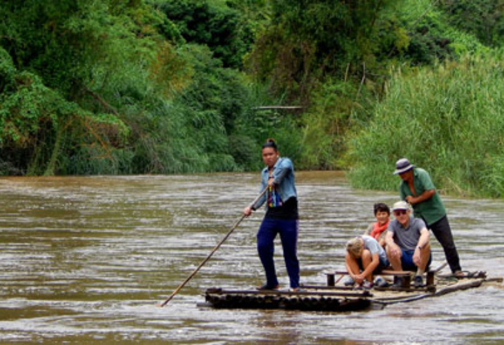 木製の筏に乗ってゆったりと流れに身を任せ、ジャングルの景色や涼しい川風を楽しめます。アクティブすぎないので小さなお子様やご年配の方にも人気。