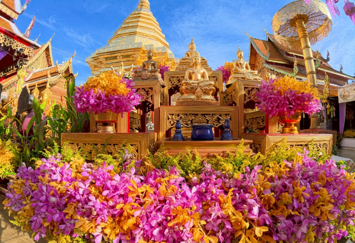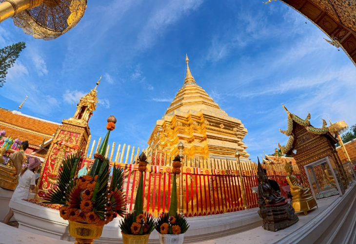チェンマイを象徴する寺院:山上から街を一望できる絶景と、金色の仏塔の美しさ。
