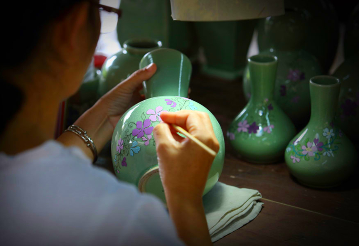 伝統工芸にふれる体験:チェンマイを代表する翡翠色の陶器「セラドン焼き」に実際に触れられる!
