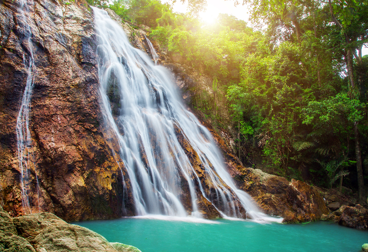 ラマイビーチからナトン方面へ向かう熱帯雨林の山中にある、サムイ島では1番大きな自然の滝です。落差20m以上ある滝の下にある滝壺では、水浴びをする人々の姿も楽しめます。