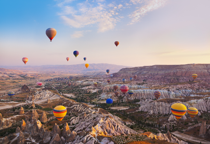 世界遺産カッパドキアの奇岩群の上空からの景観を心行くまでご堪能ください。