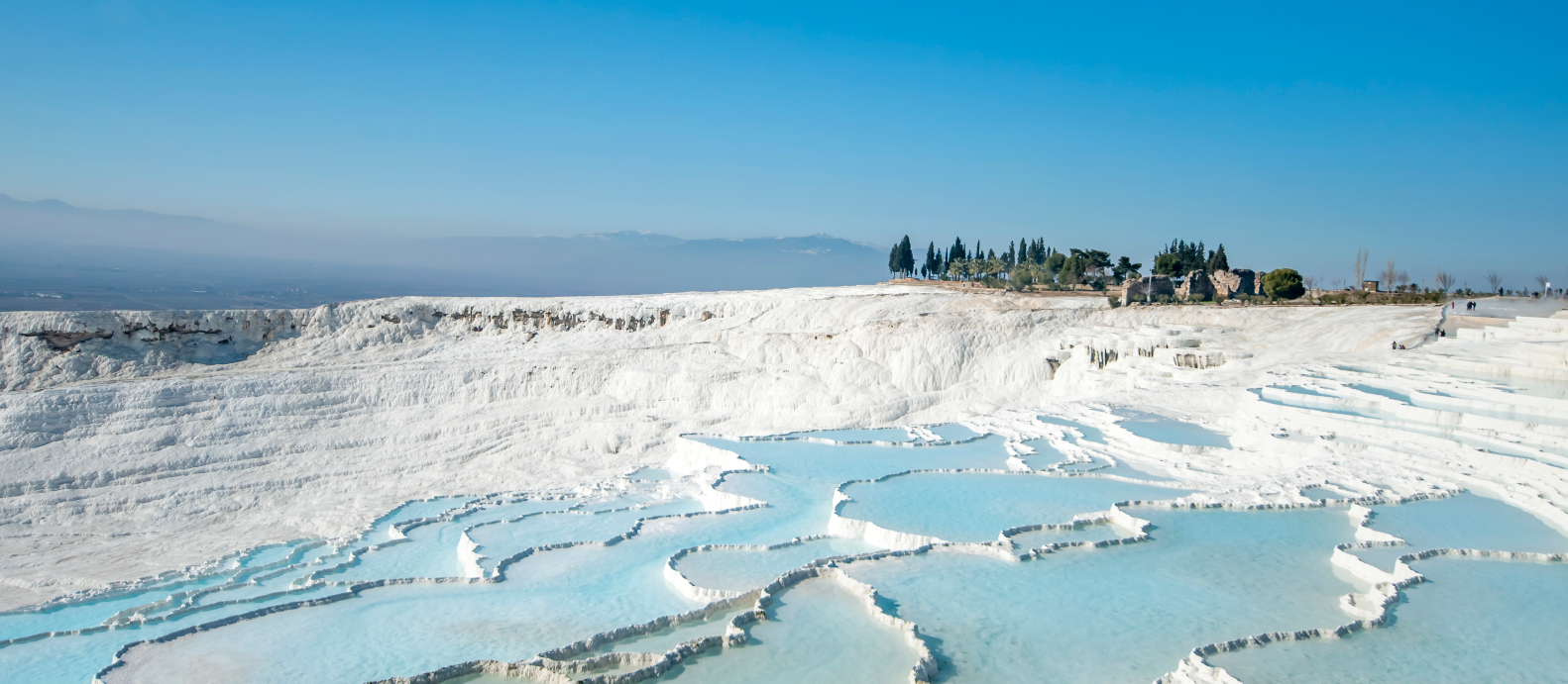 丘全体が白く覆われた石灰棚と、温泉によって繁栄した「ヒエロポリス」を中心にパムッカレの見どころをご案内します。