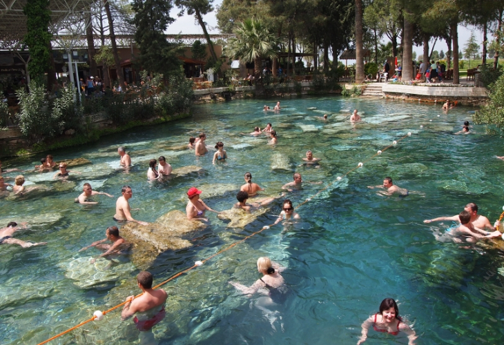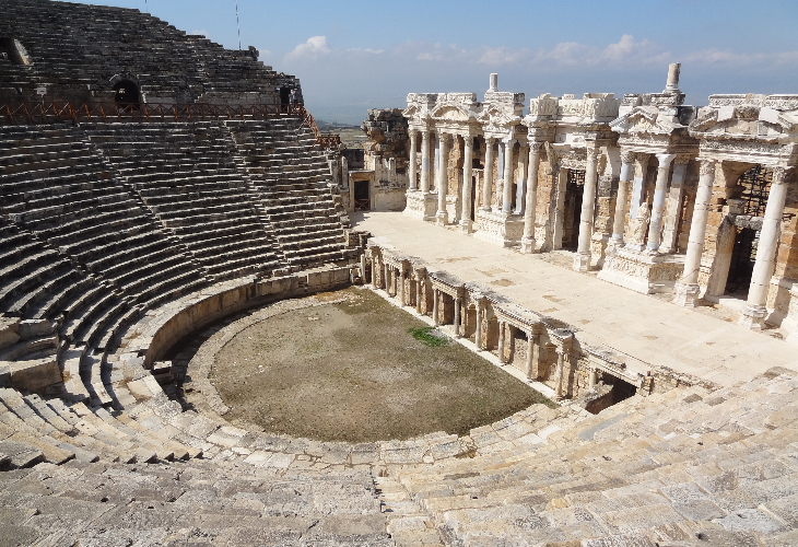 ローマ帝国の温泉保養地として栄えたヒエラポリス遺跡。保存状態がよい円形劇場は、遺跡全体を見渡すことが出来ます。「聖なる都市」と呼ばれた街の遺構は遺跡プールや劇場など見所がたくさん!