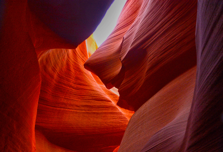 赤茶色の砂岩が、雨風に削られてできた狭い渓谷スロットキャニオン。