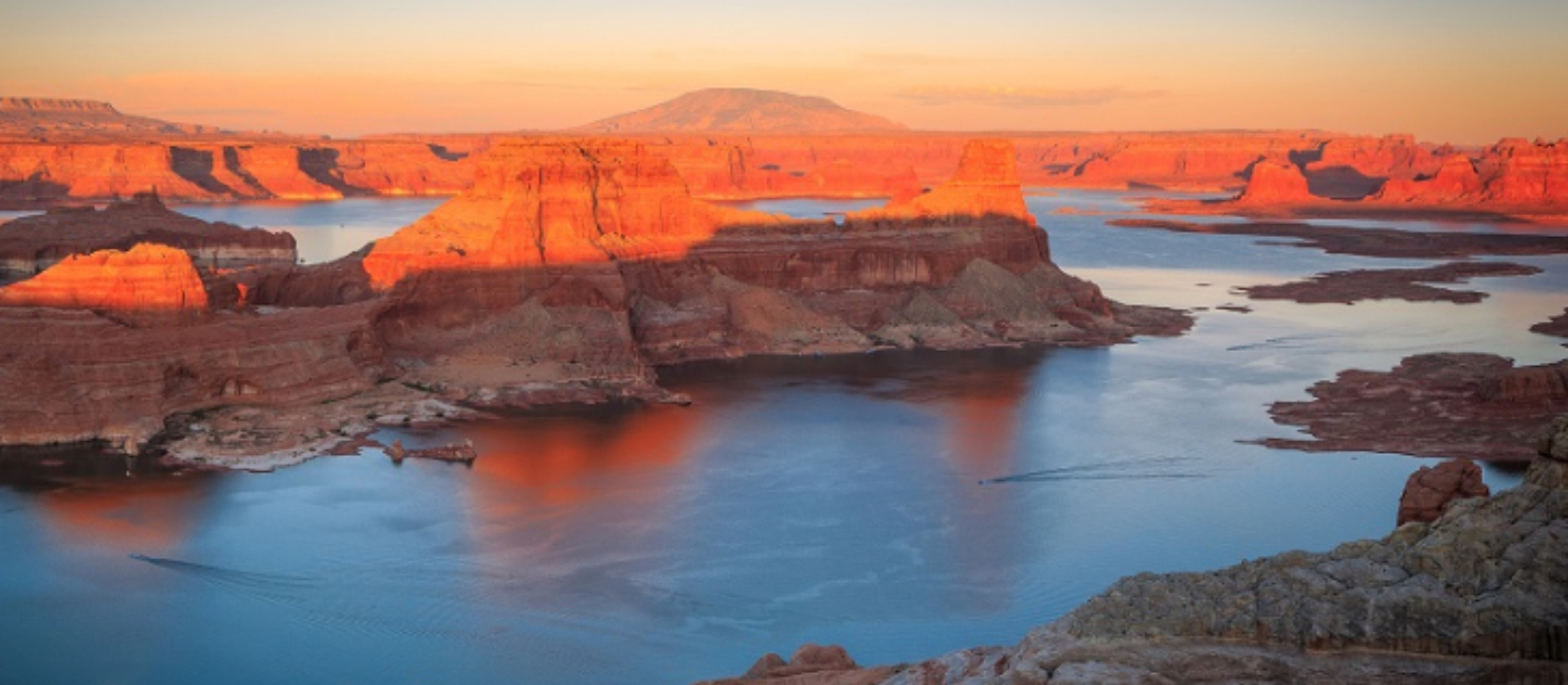 レイクパウエルは、アリゾナ州とユタ州にまたがる巨大な人造湖。 ダム湖として周辺の州の電力・水の供給源になっている一方で、朝日、夕日や星空などの景色や、ボートなどを楽しむことのできるリゾート地としても知られています。