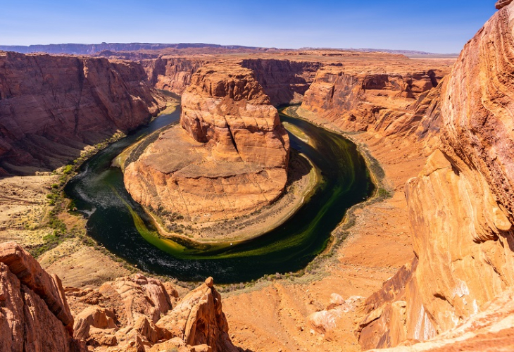 蛇行するコロラド川でも、ヘアピンカーブのように曲がる様子を見られるビューポイント。馬蹄のように見えることから名付けられました。