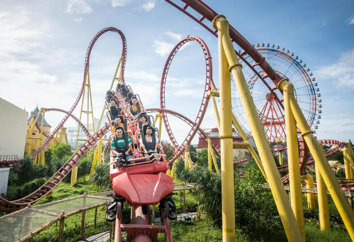 遊園地と水族館、ウォーターパークが一体となったベトナム最大級のテーマパーク。スリル満点の高速ライドをはじめとした屋内外のアトラクションやゲームセンター、ショーなどのエンターテインメントでたっぷり楽しめます。