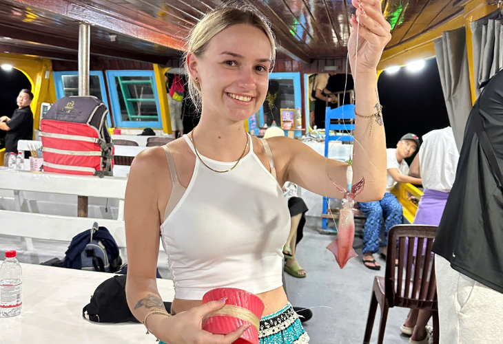 - ドゥオン・ドン中心エリアでの無料送迎、クルーズ、ローカルガイド同行、旅行保険(事故補償上限3,000万VND)、イカ釣り道具
